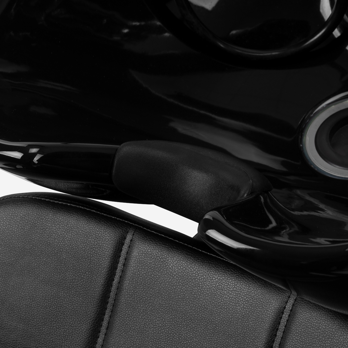Minimalistyczna elegancja i komfortFotel o nowoczesnej formie zapewnia wygodne warunki podczas zabiegów fryzjerskich. Stabilne oparcie sprzyja prawidłowej pozycji ciała, a szerokie siedzisko zwiększa komfort użytkowania nawet podczas dłuższych usług. Obicie ze skóry syntetycznej w odcieniach czerni cechuje się odpornością na wilgoć oraz łatwością utrzymania w czystości, co sprawia, że myjnia doskonale sprawdza się nawet przy intensywnym użytkowaniu. Kompletna armatura – bateria, słuchawka prysznicowa i dedykowane węże – zapewnia pełną gotowość stanowiska do pracy. Uniwersalny design pozwala łatwo dopasować model zarówno do nowoczesnych, jak i klasycznych wnętrz.
