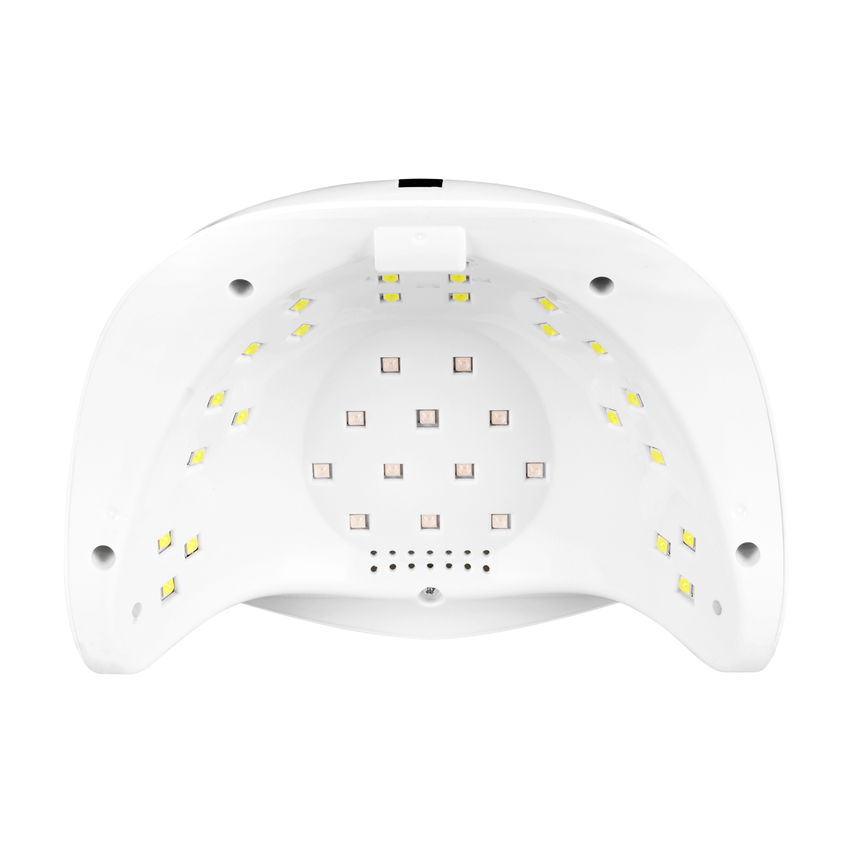 Bezcieniowe urządzenie z technologią Dual LedWyposażona w 36 odpowiednio rozmieszczonych diod LED (bez tzw. martwej strefy), zapewnia idealne utwardzanie żeli oraz lakierów hybrydowych. W tym modelu postawiono na zamknięty kształt, tzw. budkę, co pozwala na dokładniejsze i szybsze utrwalanie stylizacji paznokci. Użyta technologia Dual Led sprawia, że diody emitują światło o dwóch długościach fali, nie męcząc oczu i zapewniając szerokie spektrum działania. Dzięki zastosowanym rozwiązaniom lampa prawidłowo utwardza nawet najbardziej wymagające lakiery, docierając nawet do trudniej dostępnych miejsc na płytce paznokcia.