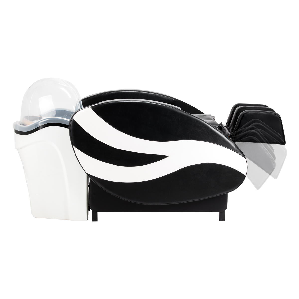 Luksusowy masaż wodny Waterfall Head SPAŁuk z regulowanym kątem nachylenia, przeznaczony do Waterfall Head SPA, umożliwia wykonanie relaksującego masażu wodnego skóry głowy. Strumienie wody działają jak naturalny masaż, poprawiając krążenie krwi, redukując napięcie i stres, przynosząc ulgę w dolegliwościach takich jak bóle głowy czy sztywność karku. Inteligentny system zamkniętego obiegu pobiera wodę z misy i wykorzystuje ją ponownie, zapewniając ciągłość zabiegu oraz wysoki komfort pracy. Połączenie technologii i relaksu wspiera poprawę kondycji włosów oraz głębokie odprężenie.